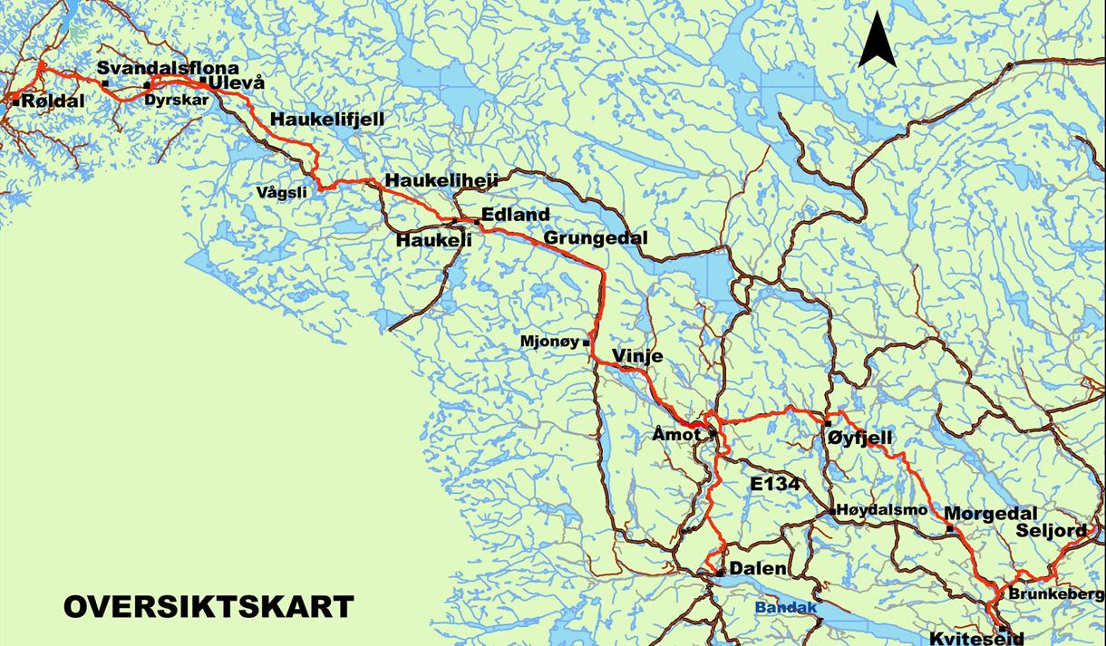 The heaviest stages will probably be the ones from Morgedal to Øyfjell (hilly terrain) from Edland to Vågsli across Haukeliheii (moor with a steep climb from the valley) and from Vågsli to Ulevå across Haukelifjell (beautiful mountain terrain, but a long day’s journey). This part of the pilgrims road is 1190 metres above the sea level.